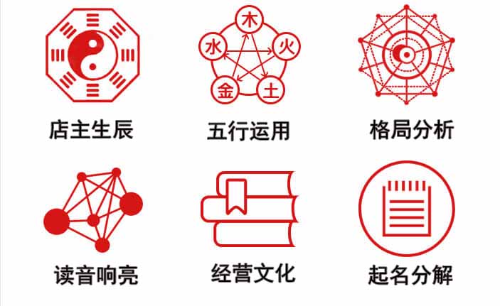 店铺起名重要因素是运用国学四柱 与经营行业配合美学原理,消费者心理学, 恰当定位,取一个好听,易记,招财店铺名字。