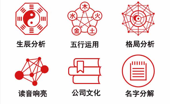 公司起名重要因素是国学四柱与 行业,配合美学原理,消费者心理学,恰当 定位,设计策划出大气,好听,招财公司名字.